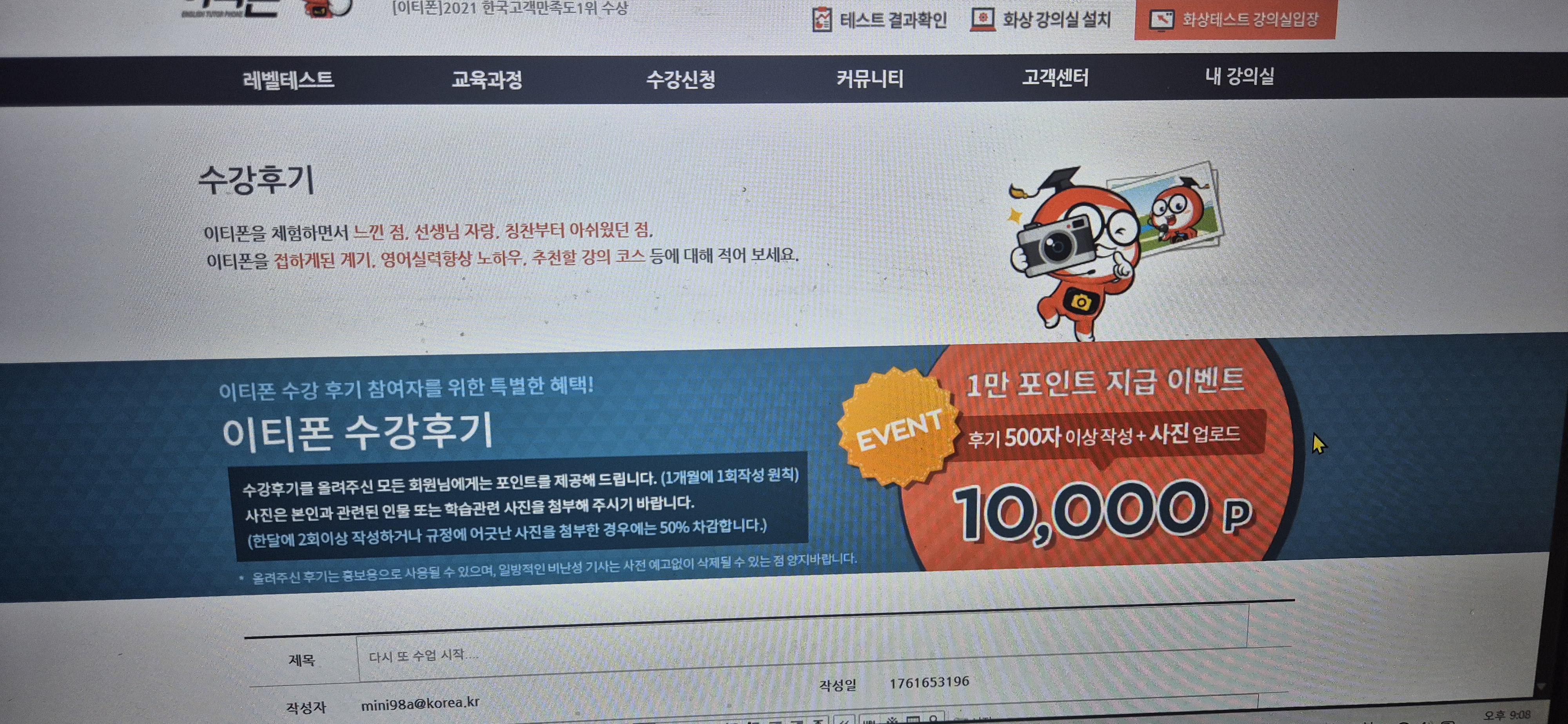 이티폰을 접하게된 계기, 영어실력향상 노하우, 추천할 강의 코스 등에 대해 적어 보세요.