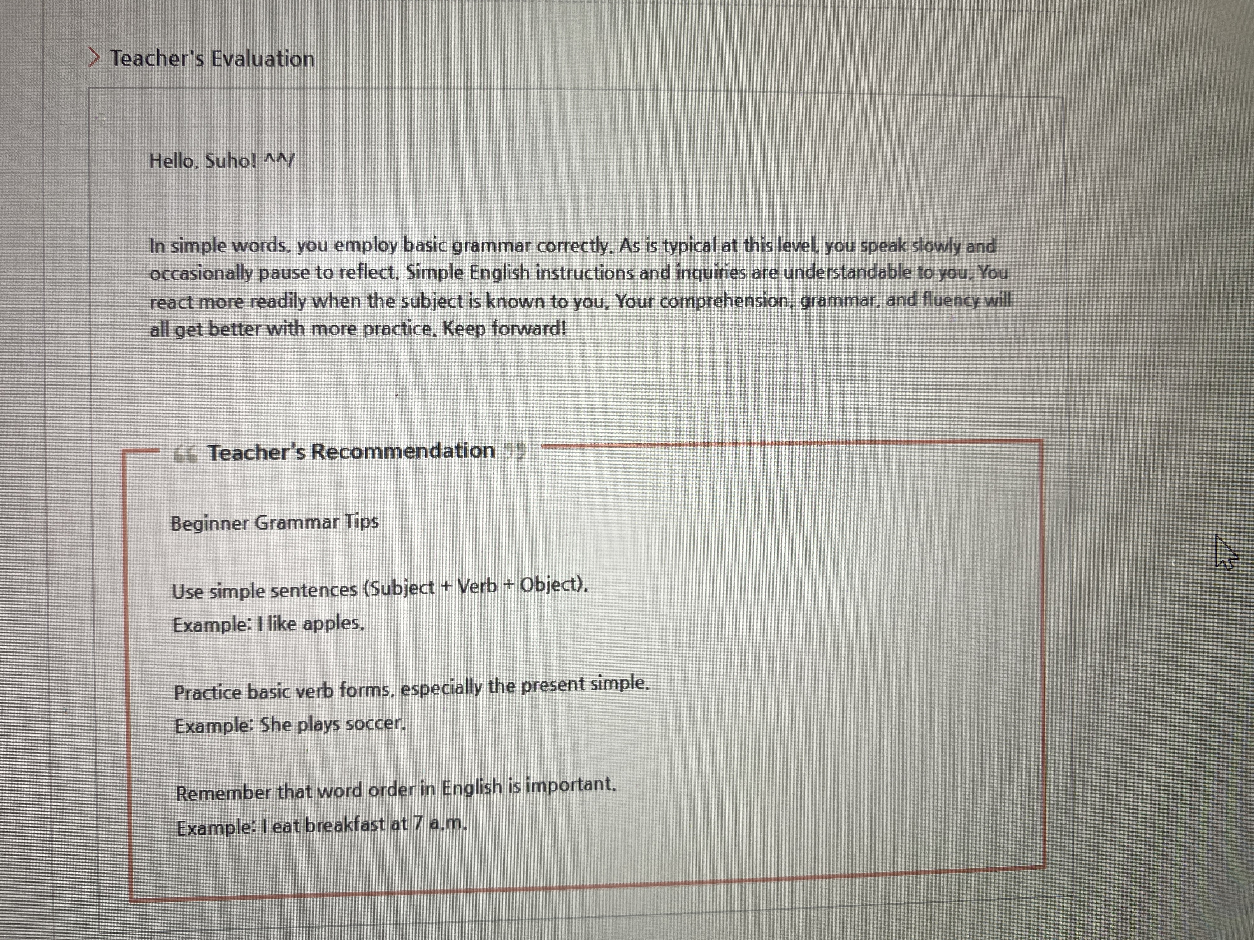 안녕하세요 회원님^^ 10개월이란 긴 시간동안 꾸준히 수업 참여해주셔서 감사합니다. 담당 강사님과 즐겁게 수업 잘 진행하고 계신 것 같아 저희도 기쁘네요! 상담 관련해서 좋은 말씀 주셔서 감사드립니다. 앞으로도 강사님과 유익한 수업 이어가시면서 회원님만의 목표 이뤄가시길 응원하겠습니다. 감사합니다♡