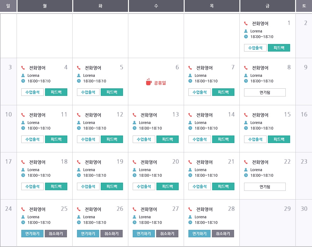 이상윤님 안녕하세요. 그동안 해오신 출결표를 보니 결석도 거의 없으시고 거의 퍼펙트하게 진행하고 계시네요. 전화영어의 포멧상 짧은 시간동안 계속 강사와 이야기를 하게 되어 있고, 처음엔 듣는것 부터 말하는 것 까지 어려울수 있으나 위에 언급한 그 짧은 시간들이 계속 쌓이다 보면 나도 모르게 점점더 익숙해 지고, 순발력 같은것들도 생기게 되고 자신있게 말을 할 수 있는 나만의 표현도 생기게 되고 합니다. 여기엔 강사의 지도, 학생의 노력 등 어려가지가 동반되어야 하는데, 이상윤님 출결표를 보니 충분히 노력을 하고 계시는걸로 보이네요. 다행이 전 보다 좋아지고 있다고 하시니 메니저로써 보람도 느끼게 됩니다. 이티폰과 수강 감사 드리며, 앞으로 쉬지 말고 계속하시다 보면 지금보다 더 만족할 만한 수준으로 향상되실거라 생각됩니다. 소중한 후기 감사드리며, 포인트 적립 해드렸습니다. 감사합니다.